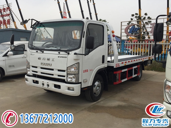 五十铃黄牌平板一拖二清障车:采用五十铃KV600宽体驾驶室,驾乘更加舒适,原厂空调,方向助力,ABS,单排可翻转,便于维修和保养,匹配五十铃130马力国五发动机,五十铃MSB五档变速,动力强劲,操控舒适,噪音低,故障低,油耗低,前桥2.5吨,后桥4.8吨,双回路式油刹,轴距3815mm,平板长度5600mm,完全满足市面上乘用车的道路救援和新车转运工作需求!是一款高端品质道路救援车辆!