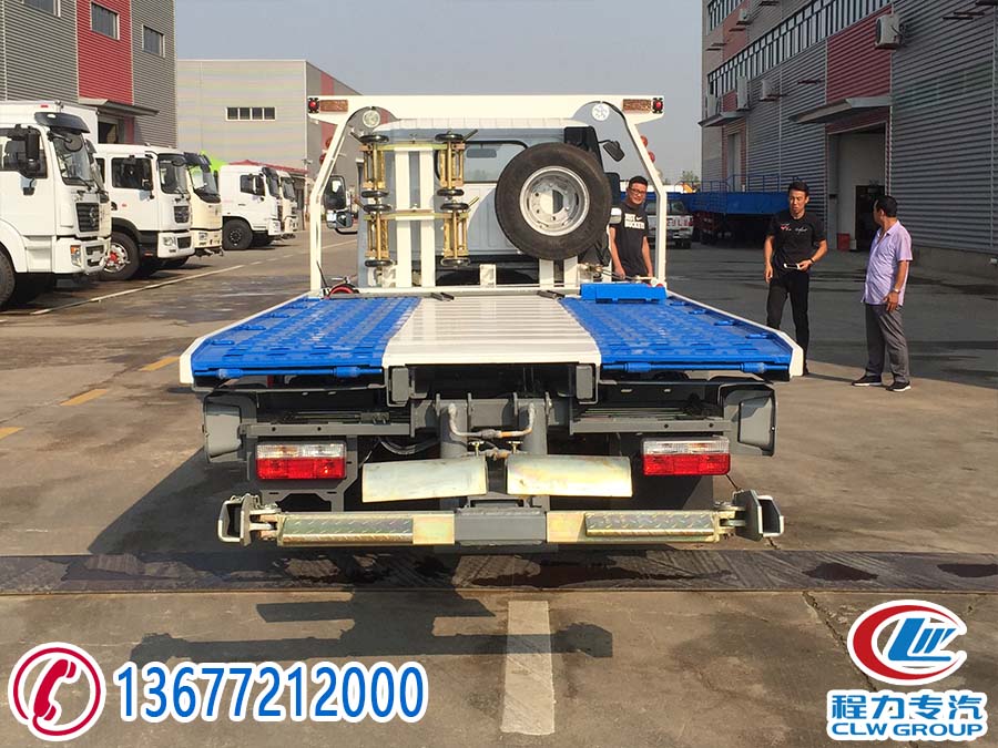 东风凯普特蓝牌平板一拖二清障车:采用全新款国六驾驶室,标配LED日间行车灯,V型大面积镀铬装饰中网,多功能方向盘,电动窗,中控锁,遥控钥匙,原厂空调,定速巡航,动力转向,离合助力,动力系统:正宗国六排放标准玉柴140马力发动机,万里扬6档铝壳变速箱,动力充沛,燃油经济性良好,采用东风德纳车桥,品质有保障。双电瓶设计,有效地保证了各类工况下的正常启动运行。上装为全新工艺平板一拖二型,平板长4200mm,尾部可选伸缩式、翻转式或一体式三种尾板,长度1米,配置4吨绞盘一个,21米钢丝绳,2.5吨后拖臂一个,L型抱胎架一对,**小车一套,4根捆绑带,一个工具箱,一对工作灯!